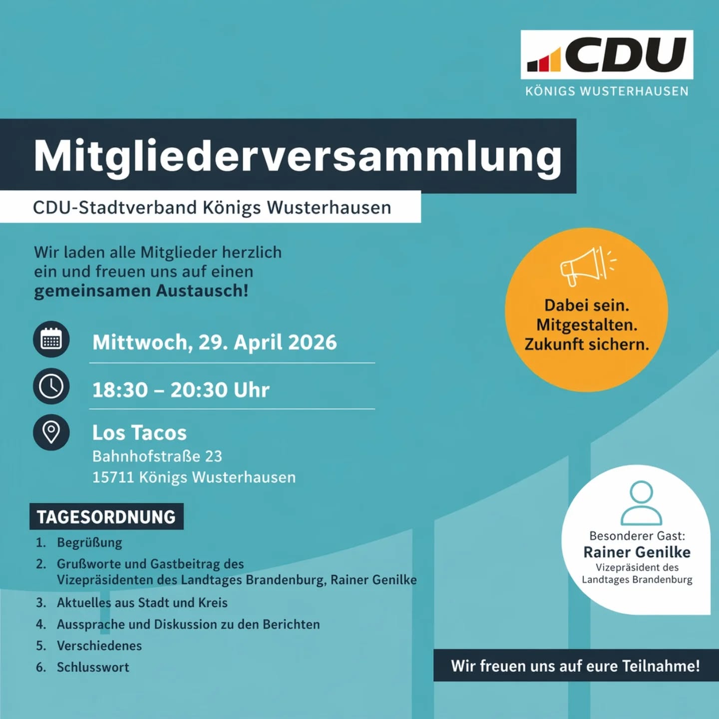 Liebe Mitbürger, Mitglieder und Freunde der CDU, am 3. Oktober feiern wir den Tag der Deutschen Einheit ? ein Tag der Freude, des Dankes und der Erinnerung. Vor 35 Jahren erfüllte sich ein Traum, an den viele Menschen in Ost und West kaum noch zu glauben wagten: Unser Land wurde wiedervereinigt, Deutschland wurde eins. Die Wiedervereinigung war kein Zufall, sondern das Ergebnis von Mut, Vertrauen und politischer Weitsicht. Besonders unser damaliger Bundeskanzler Helmut Kohl, der große Kanzler der Einheit, hat mit seiner Entschlossenheit, seinem tiefen Glauben an die Freiheit und seiner festen Verankerung in den Werten der Christlich Demokratischen Union den Weg zur Einheit bereitet. Wir verdanken ihm ? und allen Bürgerinnen und Bürgern, die in der Friedlichen Revolution für Freiheit und Demokratie auf die Straße gingen ? dass wir heute in einem freien, geeinten und starken Deutschland leben dürfen. Gerade in Zeiten, in denen unser gesellschaftlicher Zusammenhalt erneut auf die Probe gestellt wird, ist der 3. Oktober ein Tag der Besinnung. Er erinnert uns daran, dass Einigkeit, Recht und Freiheit keine Selbstverständlichkeiten sind, sondern täglich neu gelebt und verteidigt werden müssen. Lasst uns gemeinsam dafür sorgen, dass das, was uns verbindet, stärker bleibt als das, was uns trennt ? im Geiste von 1989 und im Bewusstsein unserer gemeinsamen Verantwortung für unser Land. In diesem Sinne wünsche ich allen einen frohen und besinnlichen Tag der Deutschen Einheit! Mit herzlichen Grüßen Peter Dreher Vorsitzender des CDU-Stadtverbands Königs Wusterhausen